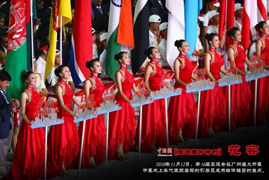 中新社廣州11月12日電(記者 盧巖) 第16屆亞運(yùn)會今晚在廣州市海心沙拉開了帷幕。作為賽會主角的運(yùn)動員們在入場式上亮相,在點燃開幕式氣氛的同時,也將自己繪成一道道靚麗的風(fēng)景線。