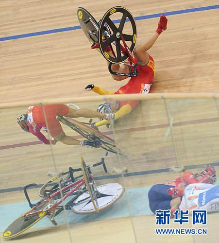 11月16日,中國(guó)選手湯科蓉在比賽中摔倒,隨后她因傷退出比賽。當(dāng)日,第16屆亞運(yùn)會(huì)場(chǎng)地自行車(chē)女子計(jì)分賽發(fā)生了嚴(yán)重的車(chē)輛相撞導(dǎo)致車(chē)手摔倒的事故,幾名選手因傷退出比賽。新華社記者李尕?cái)z