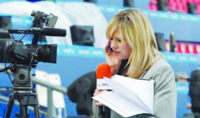 有劉翔的比賽,媒體也會為之瘋狂!在距離劉翔比賽還有3個多小時的時候,不少電視媒體已經(jīng)在跑道一側搶占有利地形,進行采訪準備,這其中半島電視臺的美女主持人謀殺了不少菲林,她的風頭蓋過了熟悉劉翔的央視記者冬日娜,她告訴記者,今天是為劉翔而來!“我10天前來到廣州,但今天是我第一次來田徑賽場,除了卡塔爾的運動員,我最關注的就是劉翔!”