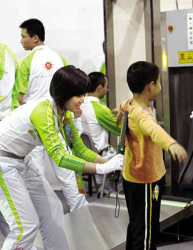 在體育場館安檢口工作的志愿者們,需要對(duì)每一位觀眾進(jìn)行前、后身從頭到腳的掃描,這意味著每檢查一個(gè)觀眾就要下蹲兩次。詹婷婷是廣東警官學(xué)院即將畢業(yè)的大三學(xué)生,作為亞運(yùn)志愿者,在廣州體育館安檢口的崗位上,她不斷地做著深蹲動(dòng)作,最多的一天超過2600次。