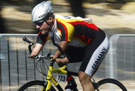 殘疾人自行車競(jìng)賽項(xiàng)目有場(chǎng)地項(xiàng)目和公路項(xiàng)目?jī)蓚(gè)分項(xiàng)。競(jìng)賽類型分為計(jì)時(shí)類項(xiàng)目、團(tuán)體競(jìng)速類項(xiàng)目、制勝類項(xiàng)目;比賽方式分為個(gè)人出發(fā)和集體出發(fā)兩種;能量供應(yīng)特點(diǎn)主要為無氧和有氧混合供能、有氧供能;比賽成績(jī)主要以運(yùn)動(dòng)員到達(dá)終點(diǎn)的時(shí)間和順序進(jìn)行排名。