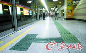 目前廣州市已經完成全部亞運城運動員村、廣東奧體中心總平面整體改造工程及19個亞殘運會場館的無障礙設施建設(其中比賽場館13個,訓練場館6個);完成新建和改造盲道1129.34公里,坡道11827個,設置了1000套盲人過街音響信號裝置;完成41個社區(qū)和113戶家庭無障礙設施改造;組織實施了公園、商場、接待酒店等公共場所和30多個宗教場所無障礙設施改造,尤其地鐵幾乎每個車站至少配有兩個出入口設置盲道。