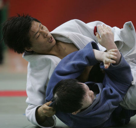 盲人柔道是專門為視力有障礙的運(yùn)動(dòng)員設(shè)立的項(xiàng)目。比賽分為男、女個(gè)人賽和男、女團(tuán)體賽。該項(xiàng)目使用的規(guī)則、場(chǎng)地、比賽形式與健全人柔道基本相同。區(qū)別在于,在運(yùn)動(dòng)員預(yù)備動(dòng)作時(shí)要提前相互提拉住對(duì)方的衣襟。這項(xiàng)運(yùn)動(dòng)的形式適合于盲人身體功能障礙的局限,易于在盲人體育運(yùn)動(dòng)中推廣。盲人柔道運(yùn)動(dòng)非常具有觀賞性,充分體現(xiàn)了盲人運(yùn)動(dòng)員身殘志堅(jiān)的拼搏精神。有人說(shuō):“盲人柔道項(xiàng)目是盲人唯一可以與健全人抗衡的項(xiàng)目!(來(lái)源: 亞殘運(yùn)會(huì)官方網(wǎng)站)