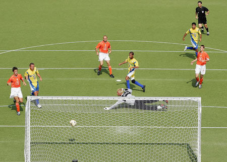 在七人制(腦癱)足球比賽中,雙方隊員在規(guī)定的區(qū)域內(nèi),以攻破對方球門得分為目的而進行的同場攻防對抗。各隊包括守門員在內(nèi)共7個人在場上比賽,每隊可以有5名替補隊員,但每場只有3次換人機會。比賽中,進攻方目標(biāo)是把球踢進對方球門得分,而防守方則是盡力阻止對方破門得分,只有守門員可以在規(guī)定的區(qū)域內(nèi)用手觸球。