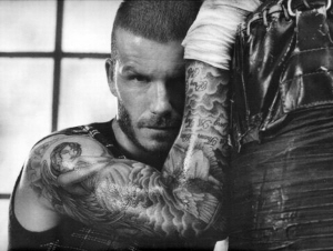 在掛歷照中,貝克漢姆成為了一個拳擊手,受傷纏著繃帶,做著揮舞拳頭的動作,而一頂鴨舌帽更讓他接近社會下層的勞工形象,看上去這只是一個大眾階層中的硬漢帥哥。