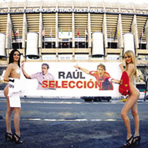 3月28日,西班牙國家隊將與土耳其隊進行一場較量,博斯克會征召勞爾嗎?西班牙媒體的民意調(diào)查顯示,西班牙75%的球迷都支持勞爾重返國家隊,有球迷建立了支持勞爾重披國家隊球衣的網(wǎng)站,還有兩位巴西女球迷,干脆身著性感裝扮在伯納烏球場外舉起標語牌,強烈要求博斯克將勞爾招入國家隊。