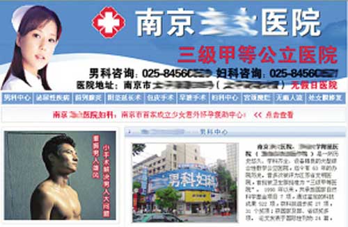 率先發(fā)現(xiàn)這一事情的是某李毅球迷組織,他們的偶像李毅竟然上了南京某性病醫(yī)院的宣傳網站的頭條位置。一則廣告是李毅低垂著腦袋,下面配的文字是“東大男科恢復您的自信與健康”,而另一則廣告則更加“露骨”,李毅的半身裸照配著“小手術解決男人大問題,重振男人雄風”的文字。某球迷憤憤不平地表示:“這樣的文字,再配上大帝裸露上半身的照片,給人的感覺要么是李毅通過這樣的手術,重振‘雄風’的,要么就是李毅成了這家性病醫(yī)院的代言人!”