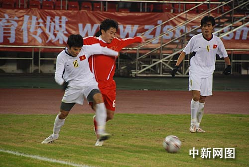 不過國足并沒有被突如其來的丟球打亂陣腳,第20分鐘憑借姜寧的妙傳造成郜林單刀,這次他把握住了機(jī)會(huì)低射命中,將比分改寫為2-1。7分鐘后,中國隊(duì)獲得角球機(jī)會(huì),吳昊爭頂漏過皮球,杜威迎球怒射破門,將比分?jǐn)U大為3-1。第37分鐘,國足發(fā)動(dòng)攻勢被越南隊(duì)后衛(wèi)破壞,姜寧在禁區(qū)前沿拿球后大力抽射,皮球洞穿了客隊(duì)大門。上半場比賽結(jié)束時(shí),國足就以4-1大比分領(lǐng)先。
