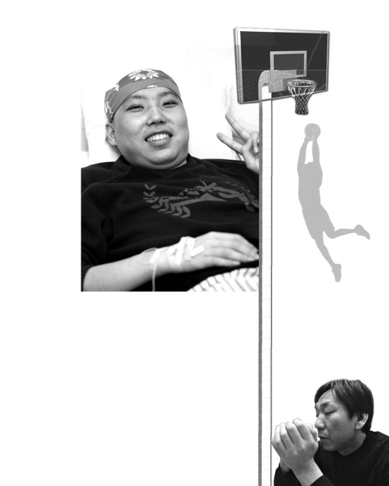 在醫(yī)大住院部走廊里與記者交談的過(guò)程中,王屾的母親幾度潸然淚下,可是出現(xiàn)在王屾面前時(shí),母親永遠(yuǎn)是滿臉笑容,“我在兒子面前從沒(méi)掉過(guò)淚,兒子躺在病床上,做家長(zhǎng)的不能倒下。”王屾的父母幾年前下崗,母親做了兩次大手術(shù),父親又患有高血壓,兩人將所有的精力和積蓄都用在培養(yǎng)王屾上,可是就在王屾在籃壇終于嶄露頭角時(shí),一場(chǎng)重病讓這個(gè)希望之星的道路充滿了崎嶇。背著兒子偷偷賣掉了阜新的房子后,王屾的父母一直在沈陽(yáng)陪伴著王屾,每天24小時(shí)守在醫(yī)院,“現(xiàn)在我們?nèi)谌俗叩侥膬耗木褪羌伊。?/p>