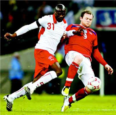 盡管采用了“四五一”的單前鋒陣型,但魯尼獲得的射門機(jī)會(huì)并不少,下半時(shí)初段他就三次射門,其中一次單刀、一次吊射和一腳遠(yuǎn)射?上(lián)前鋒并非頂級(jí)射手,浪費(fèi)了本特利兩次時(shí)機(jī)和精準(zhǔn)度都極佳的傳球。第58分鐘,巴內(nèi)塔抓往英格蘭右后衛(wèi)布朗站位的一次失誤直傳其身后,德迪約克乘虛而入,一腳低平的斜射中的,替瑞士扳平了比分,也讓屢屢浪費(fèi)機(jī)會(huì)的主隊(duì)受到了懲罰。出人意料的卡佩羅面對(duì)失球出奇得平靜,他甚至為年僅19歲的德迪約克鼓掌。