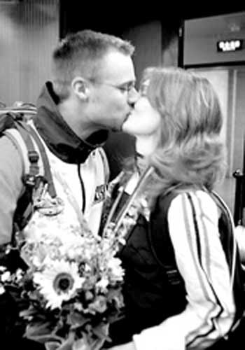 四年前,雅典奧運,一槍落敗,他身單影只;四年后,北京奧運,卷土重來,他已不再孤單。說起馬修·埃蒙斯這個名字,很多中國觀眾可能早已淡忘了這位帥氣的美國小伙,但提起雅典奧運會最后一槍,他把子彈“驚人”地打到別人的靶上,成就了賈占波“天上掉下來的金牌”,恐怕這個名字一下子就清晰起來。本屆射擊世界杯的賽場里,記者在賽場上與埃蒙斯夫婦巧遇,一次有關“幸福、愛情、射擊”的話題就此展開。
