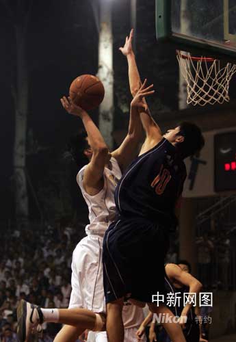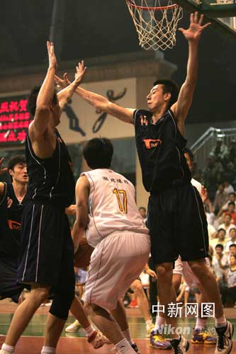 25日夜晚,2008CBA夏季聯(lián)賽第32場(半決賽)湖北煤投(遼寧盼盼)與天鐵集團(tuán)(江蘇南鋼)在激戰(zhàn)中。作 者:張云