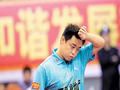 昨天下午,王皓第二個出場,對陣四川隊郝帥。這場比賽也成為王皓在“醉酒門”發(fā)生后,首次代表八一隊參賽,因此這場比賽也毫無爭議的成為了本站比賽的焦點之戰(zhàn)。比賽開始前全場觀眾興奮地大叫“王皓!王皓!”,但王皓從休息區(qū)走出來時表情卻十分木然,一個人低著頭慢慢走入場內(nèi),從表情上我們很容易感受到王皓承受了很大的壓力,比賽中,王皓一直面無表情,雖然時不時的還能打出一兩個好球,并且每打出一個好球都能得到全場雷鳴般的掌聲。不過王皓的表現(xiàn)始終心不在焉,表情比較呆滯,最后1:3失利。