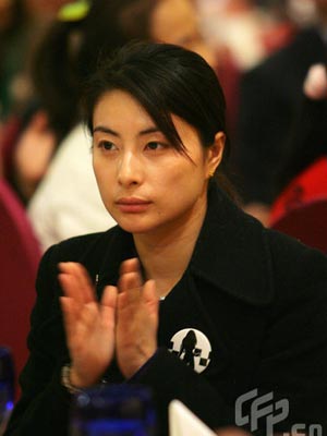 獨自前往的郭晶晶有些孤單,圖為她在為某領(lǐng)導(dǎo)講話勉強鼓掌。