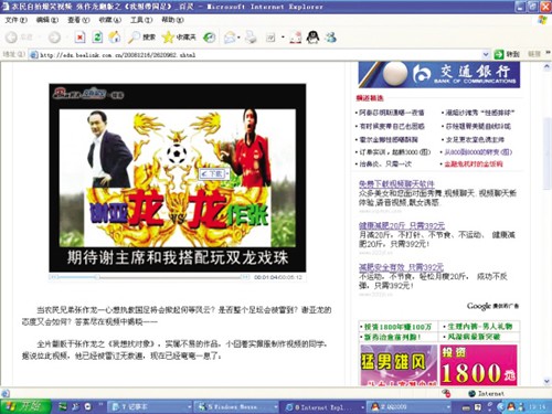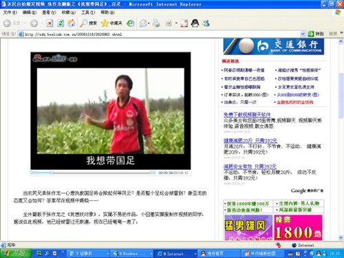 新快報(bào)記者在新浪播客欣賞到這首出爐不久的MV,它翻版于張作龍之《我想找對(duì)象》,說的是一個(gè)叫張作龍的農(nóng)民兄弟主動(dòng)請(qǐng)纓當(dāng)國足的主教練,他自稱從小鍛煉了發(fā)達(dá)的叉腰肌,腿上功夫也了得,希望能與謝亞龍合作為中國足球效命。而他上任后的絕招是把中國功夫帶入球場(chǎng),保證無往不勝。MV對(duì)謝亞龍、球場(chǎng)暴力以及黑哨等作了批評(píng)。