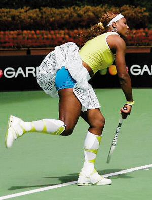 世界排名6 什么樣的衣服小威都敢穿出來秀,問題是在大太陽下,有必要網(wǎng)眼裙再配上黃白雙色及膝戰(zhàn)靴嗎?