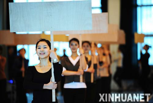 汪燕介紹,大冬會持牌手的訓練參照了2008年奧運會禮儀小姐的訓練方法。訓練主要集中在體能、形體和綜合禮儀三門課程上?此坪唵纹胀ǖ恼咀、行走、轉身、微笑,每一個動作都有嚴格的要求,都要分解練習上百次。長時間舉牌對女孩們的臂力和體力都是很大的挑戰(zhàn),在體能訓練中,汪教練要求女孩手持裝滿沙子的礦泉水瓶跳健身操。雖然訓練異常艱苦,但這群“80后”的姑娘們沒有怨言,有些持牌手甚至帶病訓練。
