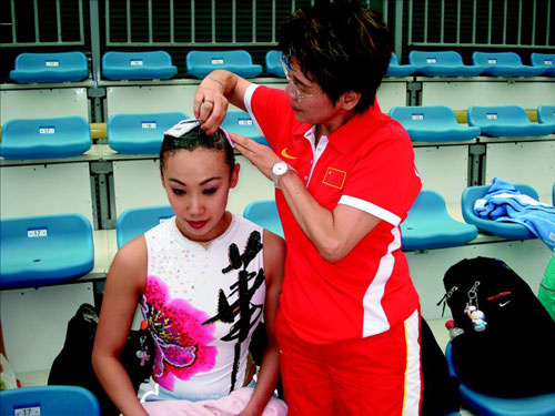 奪牌的壓力一下子轉到了9個隊員身上。對陣日本,贏了是銅牌!爱敃r,井村教練從場內出來之后找到我,表情很嚴肅,她看了我一會兒,說,‘明天的比賽,一定要爭取拿到獎牌,拜托了!褰叹毎萃形視r,我覺得肩上像掛了秤砣,壓力又大了!