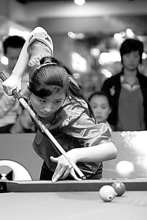 21歲的付小芳剛接觸臺球就是玩的16彩。從2002年開始在佳木斯叔叔開的球房里練球,叔叔就是她的啟蒙老師。付小芳于2004年到北京專門學(xué)習(xí)臺球!拔业哪繕(biāo)就是獲得世界冠軍!彼刻旎ㄔ谂_球上的時間不會少于八九個小時。從2005年開始,付小芳就陸續(xù)奪得過一些全國冠軍。到2006年,付小芳在全國的知名度已經(jīng)很高。