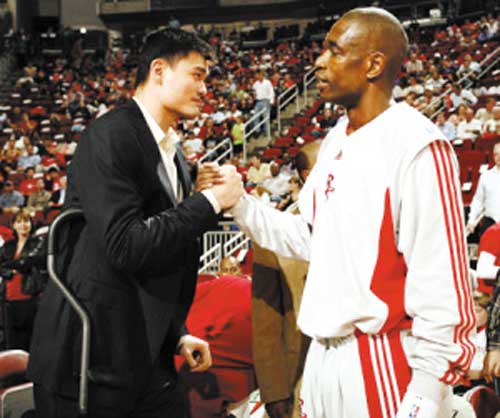 穆大叔退役儀式很風(fēng)光 姚明拄拐助陣?yán)喜际才鯃?chǎng)