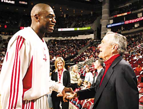 穆大叔的親密戰(zhàn)友姚明、弗朗西斯都拄著拐杖到場(chǎng)支持,見證這一光輝時(shí)刻!值得注意的是,就連美國前總統(tǒng)老布什也親臨現(xiàn)場(chǎng),為穆大叔送祝福。而斯特恩則親自為穆托姆博頒獎(jiǎng)。在頒獎(jiǎng)慶典上,火箭老板亞歷山大代表火箭隊(duì),向穆托姆博醫(yī)院捐贈(zèng)50萬美元,這也是對(duì)這位令人尊敬的老將的一份獎(jiǎng)勵(lì)。