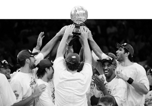 五彩紙帶從斯臺(tái)普斯的屋頂飄下,狂歡聲此起彼伏,閃光燈閃爍不停,科比與鄧肯輕輕相擁,科比帶著勝者特有的微笑,石佛的臉上讀不出任何表情,只有滿眼的失落。一個(gè)人能不能拯救球隊(duì)?湖人可以、馬刺卻不能。西部冠軍獎(jiǎng)杯被高高舉起,不同的是,主角變了,100比92,湖人總比分4比1淘汰馬刺,時(shí)隔4年之后重返總決賽。留給馬刺的是依舊無法衛(wèi)冕的宿命。