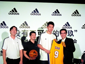 今天上午,阿迪達(dá)斯在其全球品牌中心與素有“全能后衛(wèi)”之稱的中國籃球運(yùn)動(dòng)員孫悅舉行了簽約新聞發(fā)布會。孫悅下周即將出征NBA,此番加盟阿迪達(dá)斯為其踏上國際化征程注入了強(qiáng)心劑。孫悅的加入,令阿迪達(dá)斯籃球明星隊(duì)伍一再擴(kuò)大。孫悅在湖人隊(duì)的號碼是9號,阿迪達(dá)斯也特意選取9月9日9時(shí)9分作為簽約發(fā)布會的時(shí)間,并以“沒有不可能的‘玖’”作為發(fā)布會主題來強(qiáng)調(diào)此次合作的重要意義。作為入選NBA的第一個(gè)打外線位置的中國球員,孫悅在NBA聯(lián)盟和湖人隊(duì)中將經(jīng)歷更多的磨練。
