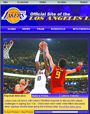 昨天,湖人官網(wǎng)頭條位置刊登了對(duì)俱樂部總經(jīng)理庫普切克的采訪,談話的唯一內(nèi)容就是孫悅。庫普切克披露,為了得到孫悅,他們?nèi)掏锤類,放棄了小加索爾。為了更深入地了解孫悅,庫普切克日前還曾專門咨詢過科比。