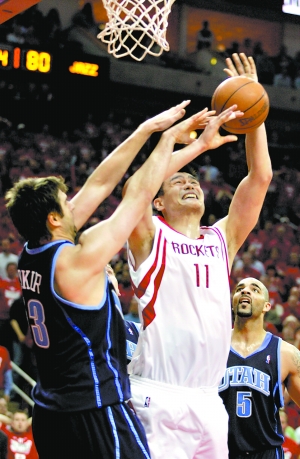 在防守時,布澤爾盡管身高不及姚明,但卻可以用強壯的身體不斷地把姚明推出進攻區(qū)域。而一旦姚明試圖表演自己的中距離投籃,奧庫則會及時跟上。你看看姚明上賽季與爵士交手時35%的命中率,確實是大失水準(zhǔn)。