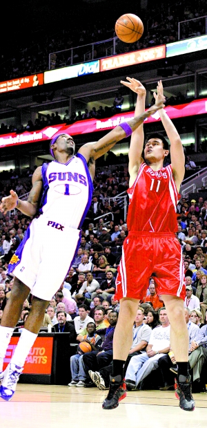 斯塔德邁爾身高臂長,而且充滿機動性的打法是姚明最頭疼的。每一次交手,斯塔德邁爾似乎總想用扣籃來壓制姚明,恰恰姚明在防守他時又很容易犯規(guī)。不過奧尼爾現(xiàn)在也在太陽,兩隊交鋒時,姚明更大的任務(wù)是防守奧尼爾。