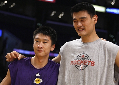 賽前的訓(xùn)練行將結(jié)束,又到了老友會的時間。孫悅顯然沒有意識到這一點,還在繼續(xù)練著球!皠e練了,過來!币γ鞔驍嗔藢O悅的訓(xùn)練。孫悅告訴姚明自己一切都好,就是有些想念國內(nèi)的美食,“一切都還好,就是找不到地方吃麻辣小龍蝦,有點想念北京的簋街了。”姚明則以“大哥”身份給了孫悅忠告:“從替補到主力,我在國家隊、在火箭隊都是這么過來的,這是一個球員必經(jīng)的過程。你還很年輕,而且有上進心,希望能夠盡快得到上場機會!辈贿^,據(jù)《洛杉磯時報》透露,孫悅將在11月28日被湖人正式下放到NBDL。期待中的中國德比,改年再見,前提是湖人愿意召回孫悅。