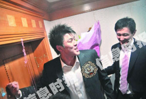 信息時(shí)報(bào)訊 (記者 馮愛(ài)軍) 宏遠(yuǎn)隊(duì)大將杜鋒昨天完成了人生的一件大事——在東莞大擺筵席迎娶馬晨菲。而在昨天凌晨,這對(duì)新人還入鄉(xiāng)隨俗進(jìn)行了東莞婚嫁中的搶新娘儀式。杜鋒雖然叫上了所有宏遠(yuǎn)隊(duì)的兄弟幫忙,可還是差點(diǎn)被“找紅鞋”的環(huán)節(jié)難倒。幸好后來(lái)得到“貴人”相助,杜鋒才能抱得美人歸。