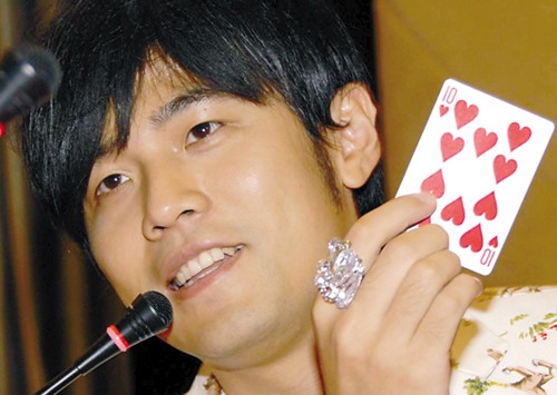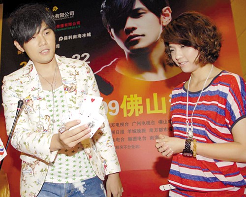昨日下午,周杰倫以“雪碧”品牌代言人身份,來到廣州新長隆酒店舉行千人大型歌迷見面會(huì),剛剛拍完電影《刺陵》的周杰倫似乎是在沙漠地帶待得太久,不僅主動(dòng)要求記者提些“奇怪的問題”,而且有問必答,還在現(xiàn)場分別為歌迷與記者連玩了數(shù)場撲克魔術(shù)。他十分肯定地承認(rèn)自己玩魔術(shù)的確有“喧賓奪主”的嫌疑,但仍自夸“魔術(shù)玩得太好,我還想明年準(zhǔn)備做一場大型魔術(shù)主題演唱會(huì)”。
