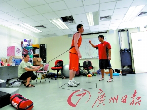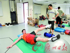 由于“病人”運(yùn)動(dòng)量極大,陳博士要求有一個(gè)專門(mén)的按摩師跟著朱芳雨,否則他的肌肉沒(méi)法恢復(fù)。宏遠(yuǎn)俱樂(lè)部把隊(duì)醫(yī)劉從順派了過(guò)去,他就負(fù)責(zé)每天幫助朱芳雨放松肌肉。但這也不僅僅是按摩師的工作,香港那邊還配備了超聲波治療儀和肌肉放松器,專門(mén)用來(lái)在大運(yùn)動(dòng)量之后,幫助運(yùn)動(dòng)員放松肌肉!斑@兩臺(tái)機(jī)子,據(jù)說(shuō)就(值)100萬(wàn)(元)!敝旆加暾f(shuō)。