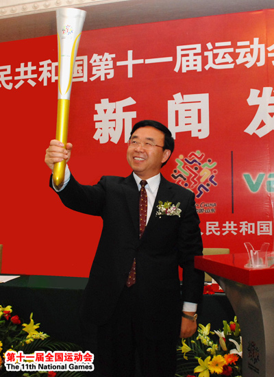 黃勝在致辭中說,火炬?zhèn)鬟f是全運會的開場鑼鼓,全社會高度關(guān)注。十一運會火炬“如意”展示了我國傳統(tǒng)藝術(shù)魅力和最新科技水平,寄托著全國人民對新中國成立60周年和十一運會的美好祝福。通過火炬?zhèn)鬟f活動,“如意”之光必將照亮神州大地,“祝福祖國、共享全運”的旋律必將響徹四面八方,為十一運會隆重開場奏響序曲、拉開大幕。