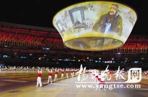 在預(yù)演現(xiàn)場,宏大的聲勢和“道具”令人震撼。就像北京奧運會開幕式用極具中國特色的畫卷作為核心道具展示古老神秘的東方文化,本次全運會上有一個特別作品,那就是一個巨型的碗狀帷幕。在晚間預(yù)演中,這個直徑大約有50米的“巨碗”從地面上緩緩升起,懸空而置。形成了一個類似巨型背投的裝置。隨著地面上節(jié)目的不斷變化,投射在“碗”幕上的影像也會不斷變換,制造強烈的視覺沖擊。