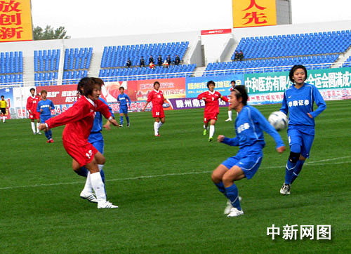 今天下午進(jìn)行的兩組賽事各隊(duì)踢得都很艱苦。上一輪中大比分勝出的江蘇隊(duì)在與天津隊(duì)對(duì)決中,一開場(chǎng)就制造了幾次很有威脅的射門機(jī)會(huì),但始終無(wú)法攻破天津隊(duì)的大門。雙方在場(chǎng)上的爭(zhēng)奪異常激烈,經(jīng)過90分鐘的激戰(zhàn)雙方均無(wú)建樹。加時(shí)賽后,把比賽拖入了殘酷的點(diǎn)球大戰(zhàn)。天津隊(duì)繼前日之后,第二次在滕州奧體中心上演點(diǎn)球大戲,以4:2的戰(zhàn)績(jī)獲得勝利,天津隊(duì)的守門員則成為該隊(duì)的功臣。