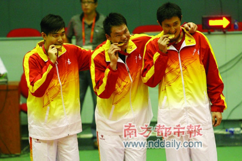 往前一天,山東隊半決賽擊敗江蘇后,全隊也曾在賽后以這種方式慶祝,似乎冠軍已是囊中之物。但同樣的晚上,廣東隊經過一節(jié)加時賽艱難戰(zhàn)勝解放軍,卻看不出有誰顯得很興奮。小伙子們說,本來四節(jié)比賽就可以贏對手10分的,非要通過加時賽這種方式進決賽,哪還有心情慶祝。包括昨天,也是這樣,本來早早就可以讓決賽失去懸念,最后卻只是有驚無險地以5個凈勝分奪冠,隊員們回到更衣室后,平靜得就像是剛剛打完一場聯(lián)賽。