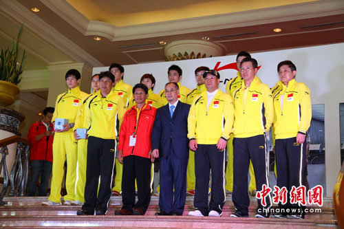 中新網(wǎng)5月9日電(記者 宗晨亮)2010年湯尤杯即將在5月9日-16日開打,國家羽毛球隊(duì)已抵達(dá)馬來西亞首都吉隆坡。大賽在即,近日國家羽毛球隊(duì)參加了“李寧-中國國家羽毛球隊(duì)誓師大會”,李寧到場與羽毛球隊(duì)總教練共同揭開了這次出征的新裝備,林丹、鮑春來等國家羽毛球隊(duì)主力隊(duì)員也身穿全新的比賽服裝集齊亮相,總教練李永波則代表國家羽毛球隊(duì)信心十足地表示“我們一定要在這次的湯尤杯上繼續(xù)取得佳績,力爭衛(wèi)冕。”