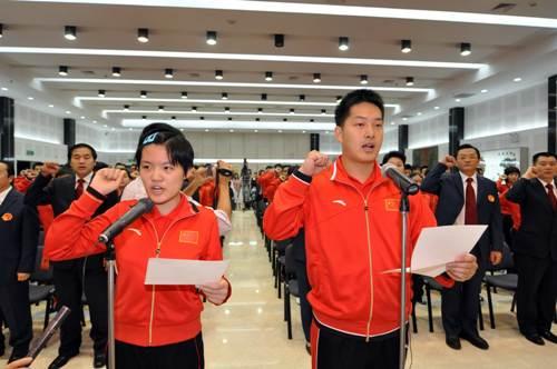 圍棋棋手常昊九段與國際象棋世界亞軍侯逸凡作為代表,帶領(lǐng)中國體育代表團全體成員面向國旗向祖國和人民作了莊嚴宣誓。