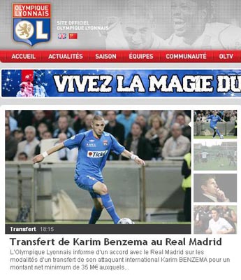 中新網(wǎng)7月2日電 北京時間今日凌晨,里昂官網(wǎng)宣布:球隊當家前鋒本澤馬將加盟西甲豪門皇馬,轉(zhuǎn)會費為3500萬歐元。這是繼卡卡、C羅和阿爾比奧爾之后,弗洛倫蒂諾今夏為皇馬引進的第4名強援。