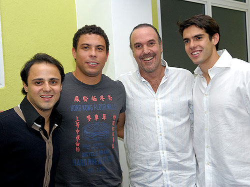 6 月10日是卡卡的兒子盧卡滿一周歲的日子,而當(dāng)天小盧卡的父親卻正跟隨巴西隊迎戰(zhàn)巴拉圭隊。為了彌補這個遺憾,上周日,卡卡特意在巴西圣保羅為兒子補辦了一個生日宴會,邀請了埃拉諾、羅比尼奧、F1車手馬薩和羅納爾多等100多名嘉賓參加。光臨現(xiàn)場的其他嘉賓都是盛裝出席,沒想到羅納爾多卻穿著一件夠“潮 ”的體恤“閃亮”出場!衣服正面橫著幾個中文大字:“香港面粉廠”,旁邊像對聯(lián)一樣地印著“上等中糧白粉、特殊工藝……”等字樣,搞笑之極。在那排“香港面粉廠”的文字下面還有三個中文“單車嘜”,肥羅在搞笑之余還不忘體育鍛煉。