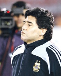 阿根廷隊上周在友誼賽中,以全部本土球員出戰(zhàn),2比0戰(zhàn)勝加納隊,這兩個進球都是由巴勒莫打進的。馬拉多納通過這場比賽,選拔了9名本土球員。