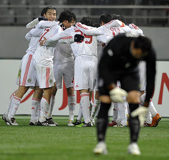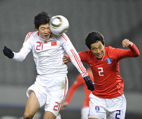 法新社驚嘆稱,“中國的男人們只用了四分鐘就攻入了第一例進(jìn)球!鼻ㄓ衣吠黄坪髾M傳,中場球員于海插上頭球攻門得手。第27分鐘,楊昊在得球后妙傳郜林,后者擴(kuò)大了比分。鄧卓翔在第60分鐘也接到了曲波的助攻,并攻破了韓國隊的大門。2005年東亞四強(qiáng)賽的冠軍中國隊防守也很出色,韓國隊甚至難以形成有效的傳中。
