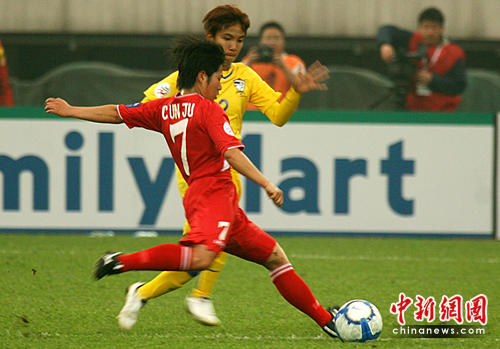 中新網(wǎng)成都5月20日電(記者劉忠俊 劉賢 楊杰)2010年女足亞洲杯A組比賽拉開戰(zhàn)幕,亞洲勁旅朝鮮女足迎戰(zhàn)泰國女足。開場4分鐘朝鮮隊連進2球,下半場再進一球,以3:0大勝泰國隊。
