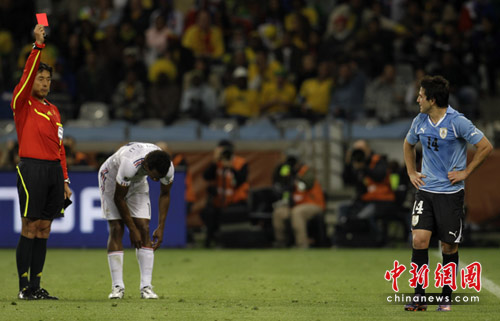 第79分鐘,馬盧達橫向帶球之后一腳遠射,偏的不多頗具威脅。第81分鐘,場上風云突變。替補登場的洛德伊羅放倒并踩踏薩尼亞,吃到第二張黃牌之后被紅牌罰下,這也是本屆世界杯的第一張紅牌。值得一提的是,烏拉圭隊是世界杯預選賽中吃黃牌最多的球隊,共吃到55張,而本場比賽余下的時間他們只能以10人應戰(zhàn)。
