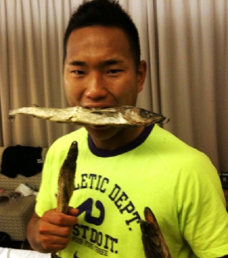 中新網(wǎng)6月19日電 在和巴西隊(duì)的比賽中表現(xiàn)出色的朝鮮國(guó)家隊(duì)隊(duì)員鄭大世在博客中上傳了“明太魚照片”,引起了人們的熱議。韓國(guó)《中央日?qǐng)?bào)》報(bào)道稱,他在博客中公開了自己咬著明太魚的滑稽照片。他說:“明太魚是朝鮮國(guó)家隊(duì)隊(duì)員們喜歡的零食,我也很喜歡!
