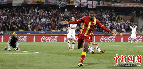 中新網6月27日電 今天凌晨2:30,南非世界杯1/8決賽第二場美國與加納的比賽,在勒斯滕堡的皇家巴福肯球場拉開戰(zhàn)幕。憑借普林斯·博阿滕和多諾萬在上下半場的進球,雙方在90分鐘之內戰(zhàn)成1-1平。而加時賽中,中鋒吉安突破射門建功,幫助加納隊昂首晉級八強。
