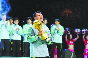 晚7時30分,晚會拉開帷幕,在一段勁爆的熱舞之后,國安將士陸續(xù)登場和觀眾見面。所有人站定后,徐云龍在全場球迷的呼喊聲中捧著中超冠軍杯“火神杯”登臺,現(xiàn)場氣氛被推向高潮。隨后,徐云龍將獎杯交給教練和隊友,大家依次高舉獎杯向球迷致意。球員們和歌星沙寶亮一起演唱了隊歌《國安永遠(yuǎn)爭第一》。
