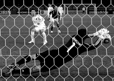 易邊再戰(zhàn),日本隊加強進攻,一度占據(jù)優(yōu)勢。第54分鐘,內(nèi)田篤人禁區(qū)內(nèi)右側(cè)勁射,皮球擊中立柱后彈在楊智手里。1分鐘后,榮昊左側(cè)下底快速傳中,在中國隊搶點壓力下,中澤佑二飛身救險和門將酋崎正剛彼此干擾,皮球反彈向空門,田中斗笠王在門線前解圍。第81分鐘,姜寧左路形成傳中,日本隊球員禁區(qū)內(nèi)手球犯規(guī),可惜楊昊打出力道不大的半高球,被酋崎正剛將點球撲出。最終在凜冽的寒風中,雙方0比0戰(zhàn)成平手。整場比賽,國足打出了久違的精氣神,多次贏得現(xiàn)場中國球迷掌聲。